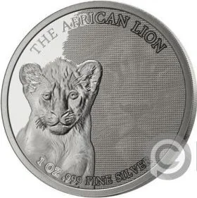 Description: Each coin's reverse features a baby Wildcat, representing the Asian Tiger, European Lion, and African Lion. Using Visual Layer Minting, a geometric texture reveals the image of the corresponding adult feline. Also inscribed are "1 OZ .999 FINE SILVER" and the coin's name.