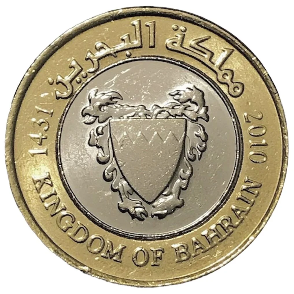 Bahrain's coat of arms, its name in Arabic and English, and the Hijri and Gregorian dates.