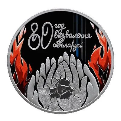 A stylized map of Belarus cradled in flaming hands.