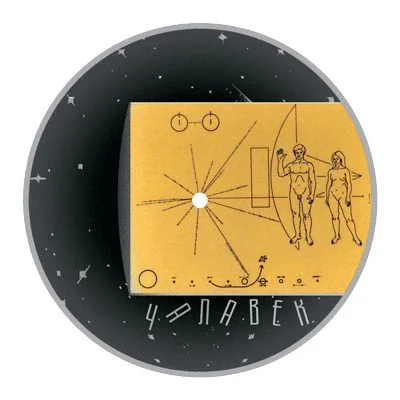 A graphic message to other civilizations on the Pioneer probe's plaque.