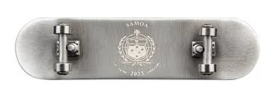 Description: The coin's obverse shows the underside of a skateboard with its wheels, featuring Samoa's Coat of Arms and the inscriptions: "SAMOA," "2023," "1 oz," "Ag 999," and "5 DOLLARS."