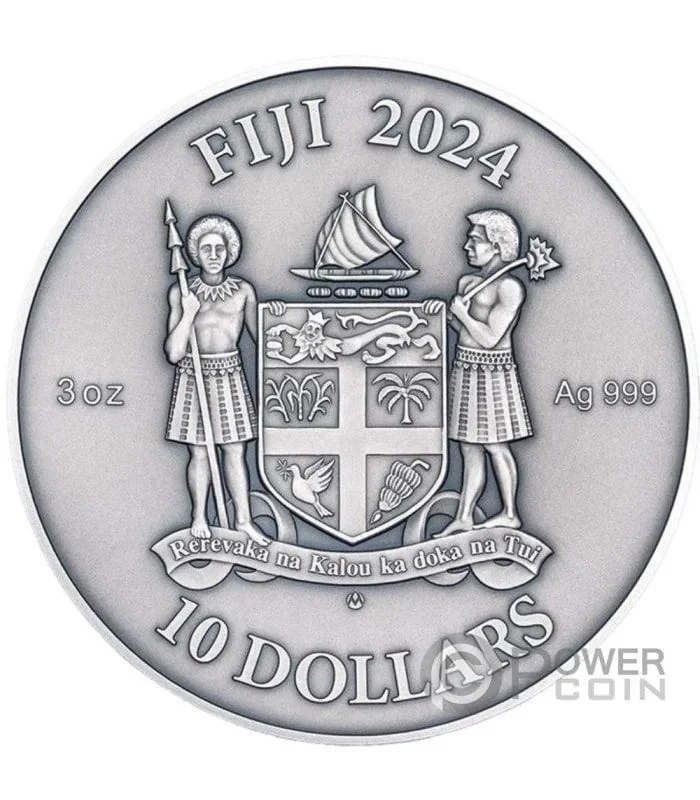 Description: The obverse features Fiji's Coat of Arms with inscriptions for the country, year, weight, purity, and face value.
