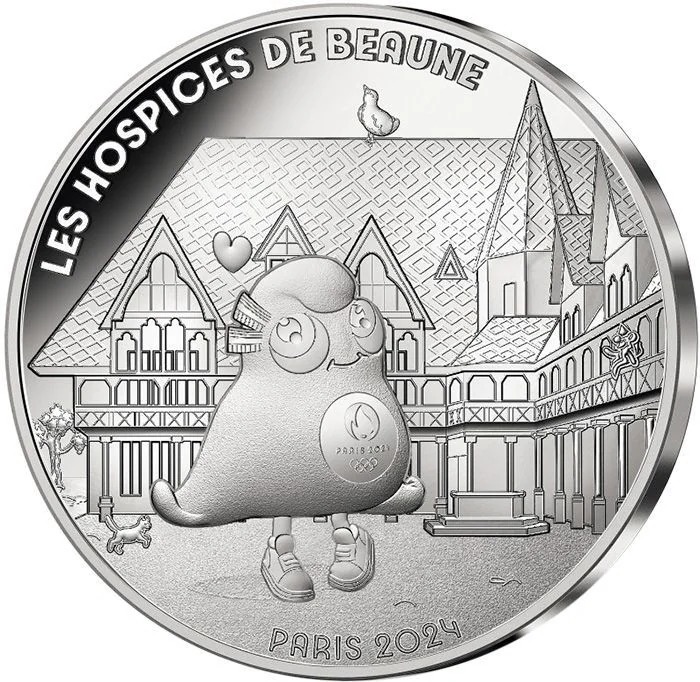 "10 EURO" flanked by laurel and oak branches, within three hexagons inscribed "RÉPUBLIQUE FRANÇAISE" and the year.