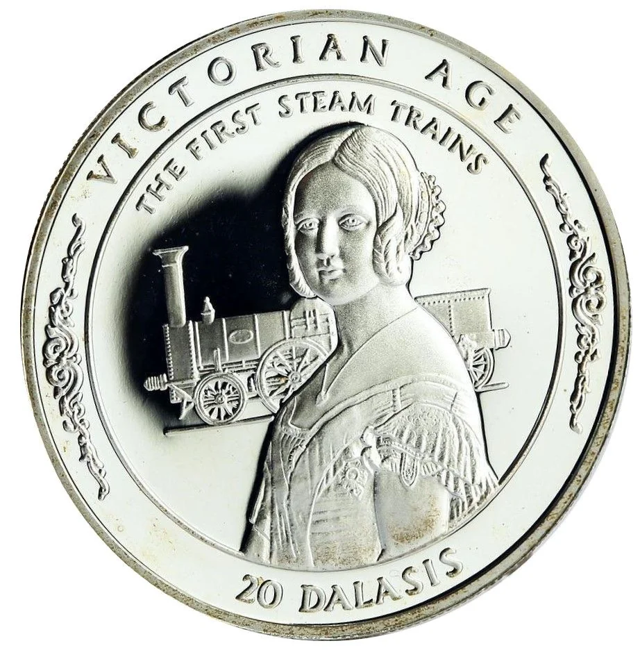 Portrait of Queen Victoria, steam locomotive behind, value below.