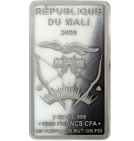 Description: The obverse bears Mali's Coat of Arms with "REPUBLIQUE DU MALI," the year 2023, and the face value of 1000 Francs.
