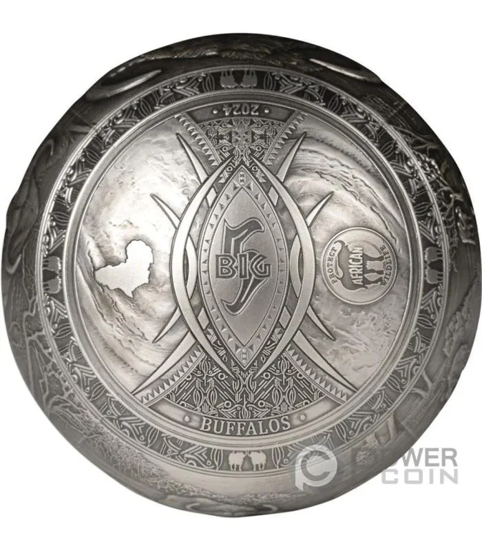Top: "BIG 5" at center, two African outlines, then "BUFFALOS" and the year on the rim.