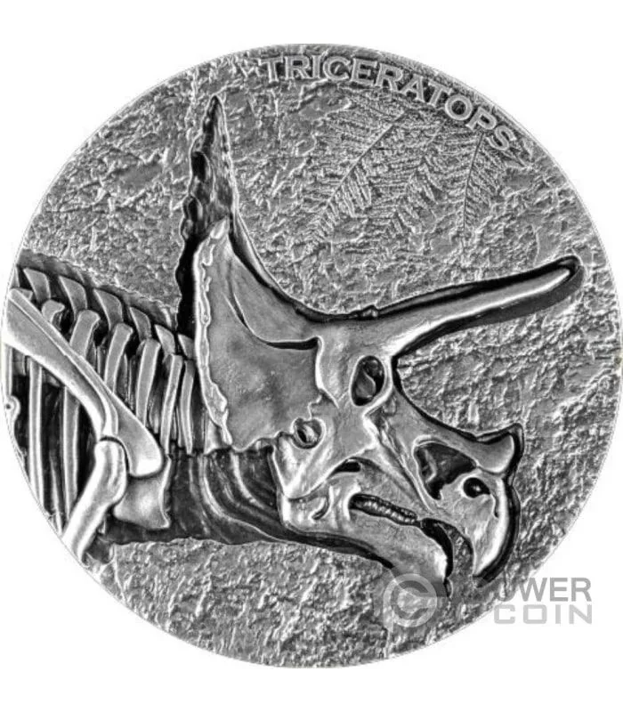 Triceratops skeleton. Reverse inscribed "TRICERATOPS" — the set's name.
