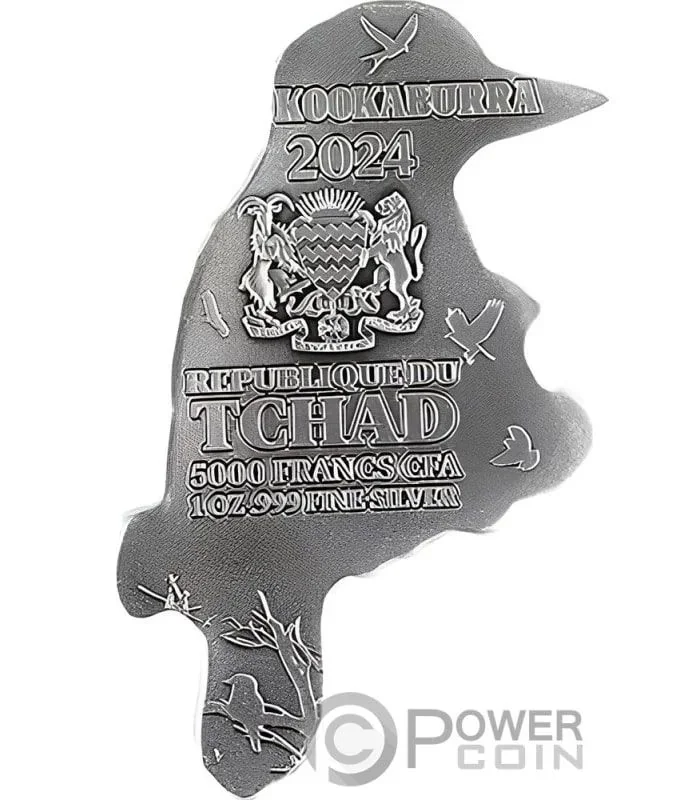 Description: Chad's Coat of Arms with inscriptions: "5000 FRANCS CFA," "1 OZ," and "999 FINE SILVER."