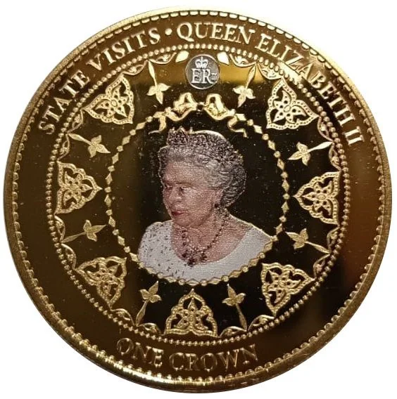 Queen Elizabeth II portrait above date.