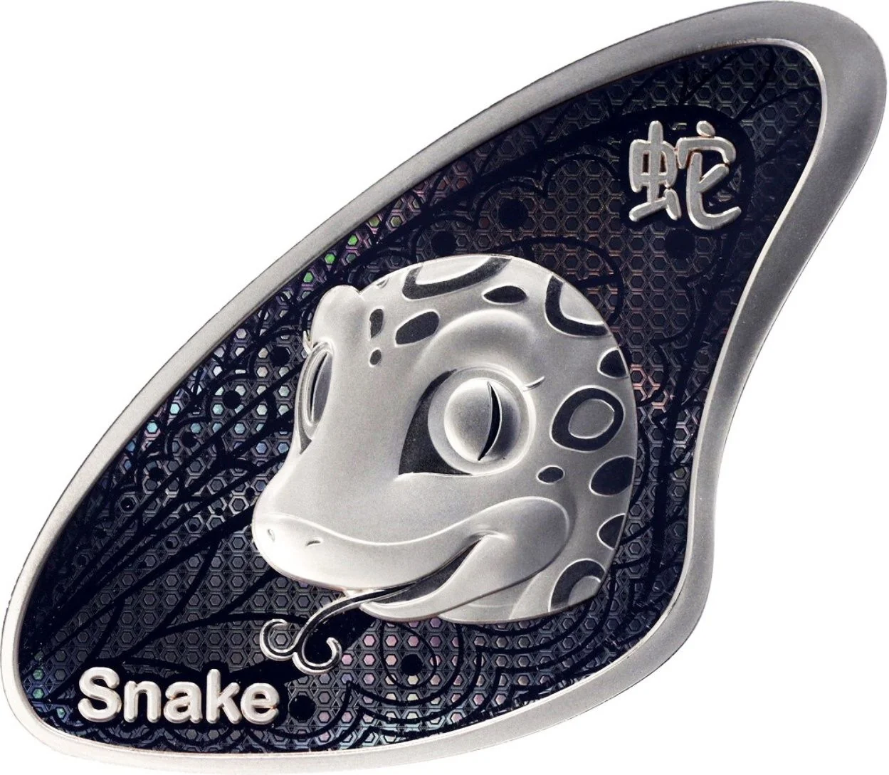 Snake head facing right on a hologram background, with a Queen Elizabeth II coin above and a small Samoan coat of arms below.