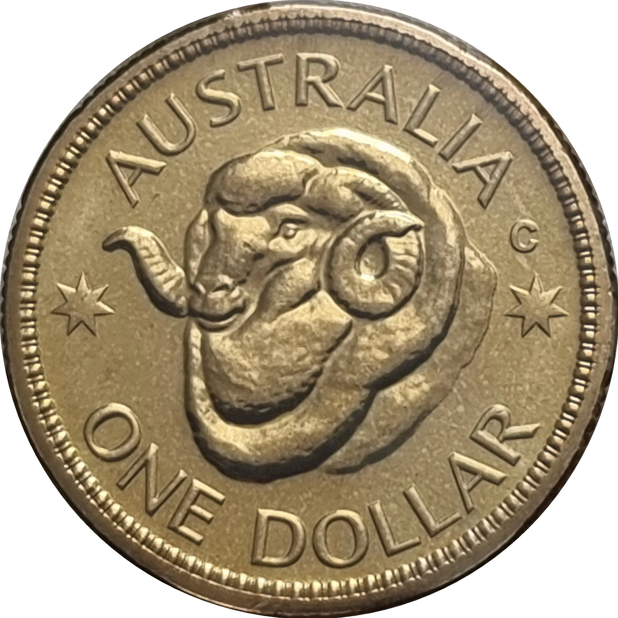 A Merino ram's head, flanked by two seven-pointed stars, with a 'C' mintmark above the right star. Featured on Australian shillings (1938-1963).