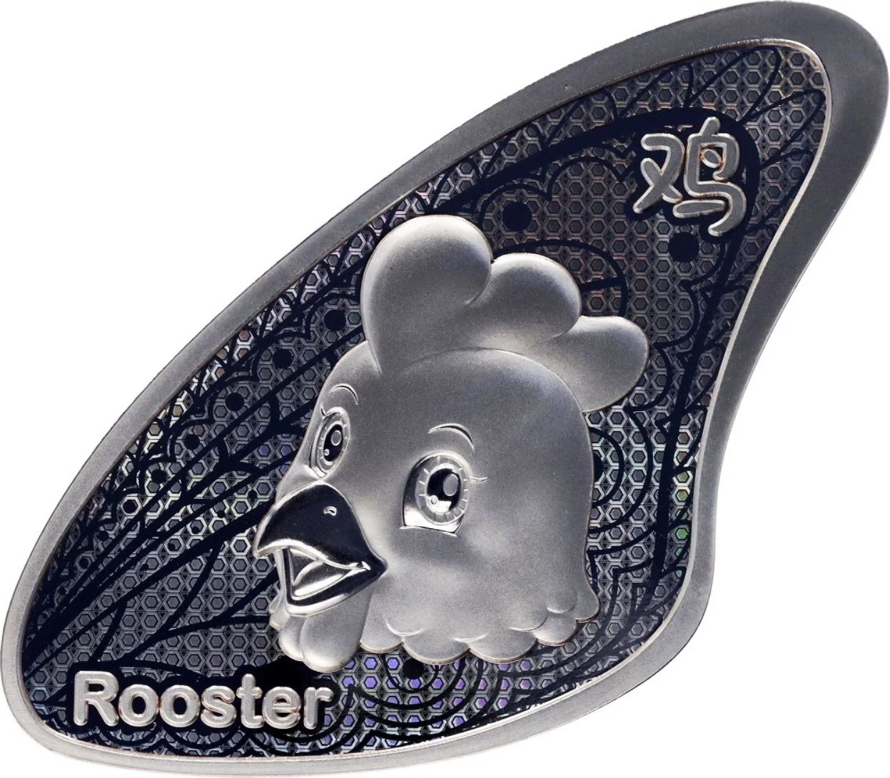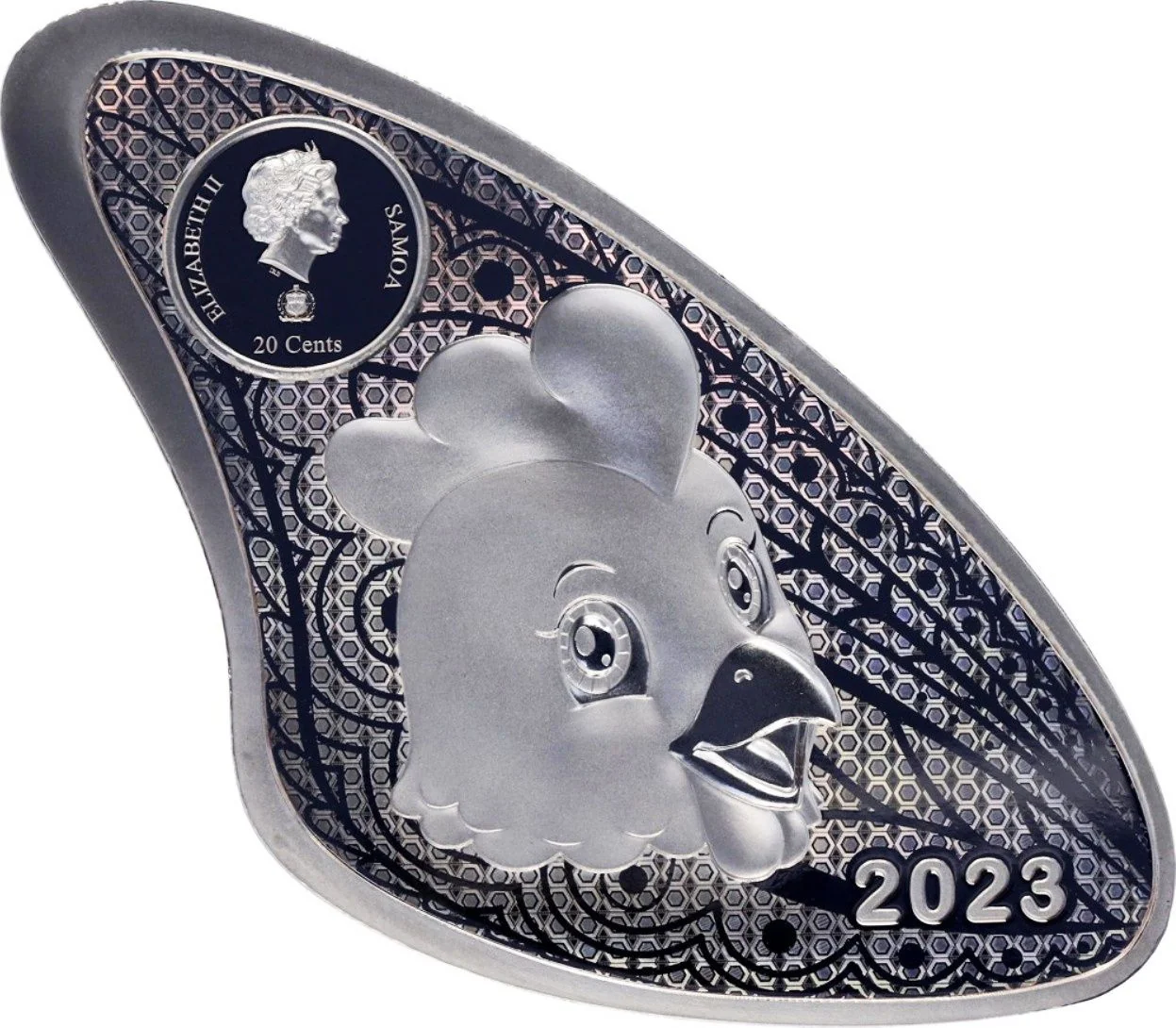 Rooster head right on hologram, with Queen Elizabeth II coin above and Samoan coat of arms below.