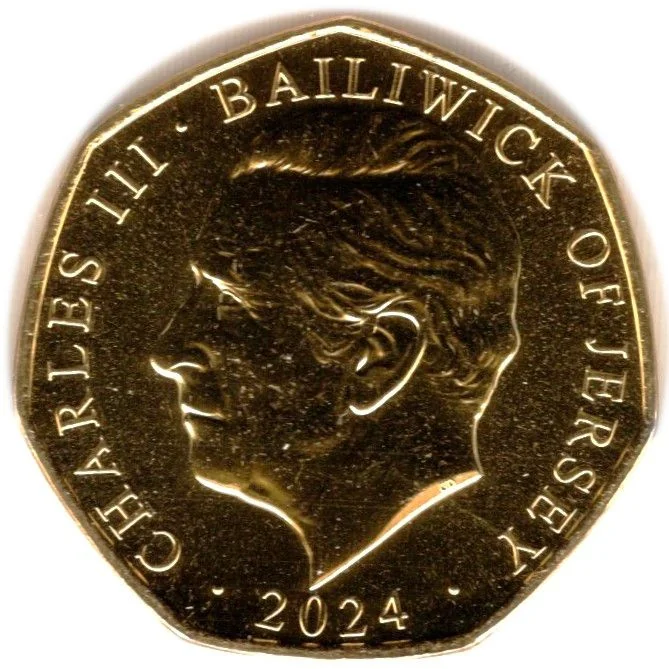 King Charles III left-facing uncrowned head. Legend around, date below.