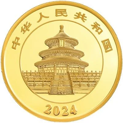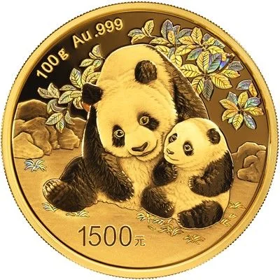 The reverse shows a mother panda and cub. The mother is the cub from the 2019 coin, symbolizing the "continuation of parental love," alongside the face value, weight, and purity.