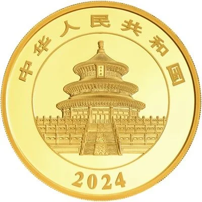 The reverse shows a mother panda and cub. The mother is the cub from the 2019 coin, symbolizing the "continuation of parental love," alongside the face value, weight, and purity.