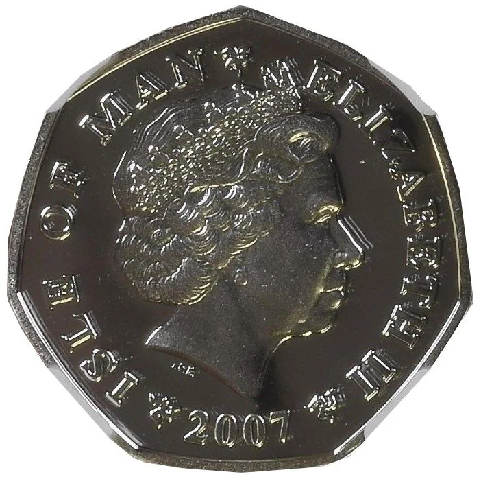 In 2007, the Isle of Man's currency situation was defined by its unique political status as a British Crown Dependency. While not part of the United Kingdom, the Island's long-standing monetary policy was to align its currency with that of its largest trading partner. Consequently, the official currency was the Manx pound, which was issued by the Isle of Man Government and maintained a fixed parity at a 1:1 exchange rate with the pound sterling. Sterling notes and coins also circulated freely and were accepted as legal tender alongside distinct Manx-issued notes and coins, which featured local symbols and imagery.