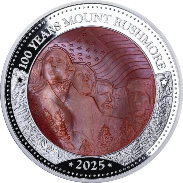A massive sculpture of four U.S. presidents carved into a granite mountainside.