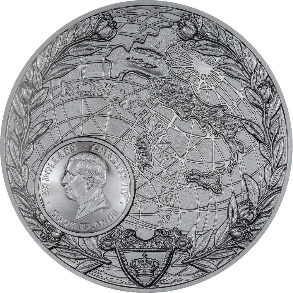 King Charles III effigy over Italy's map.