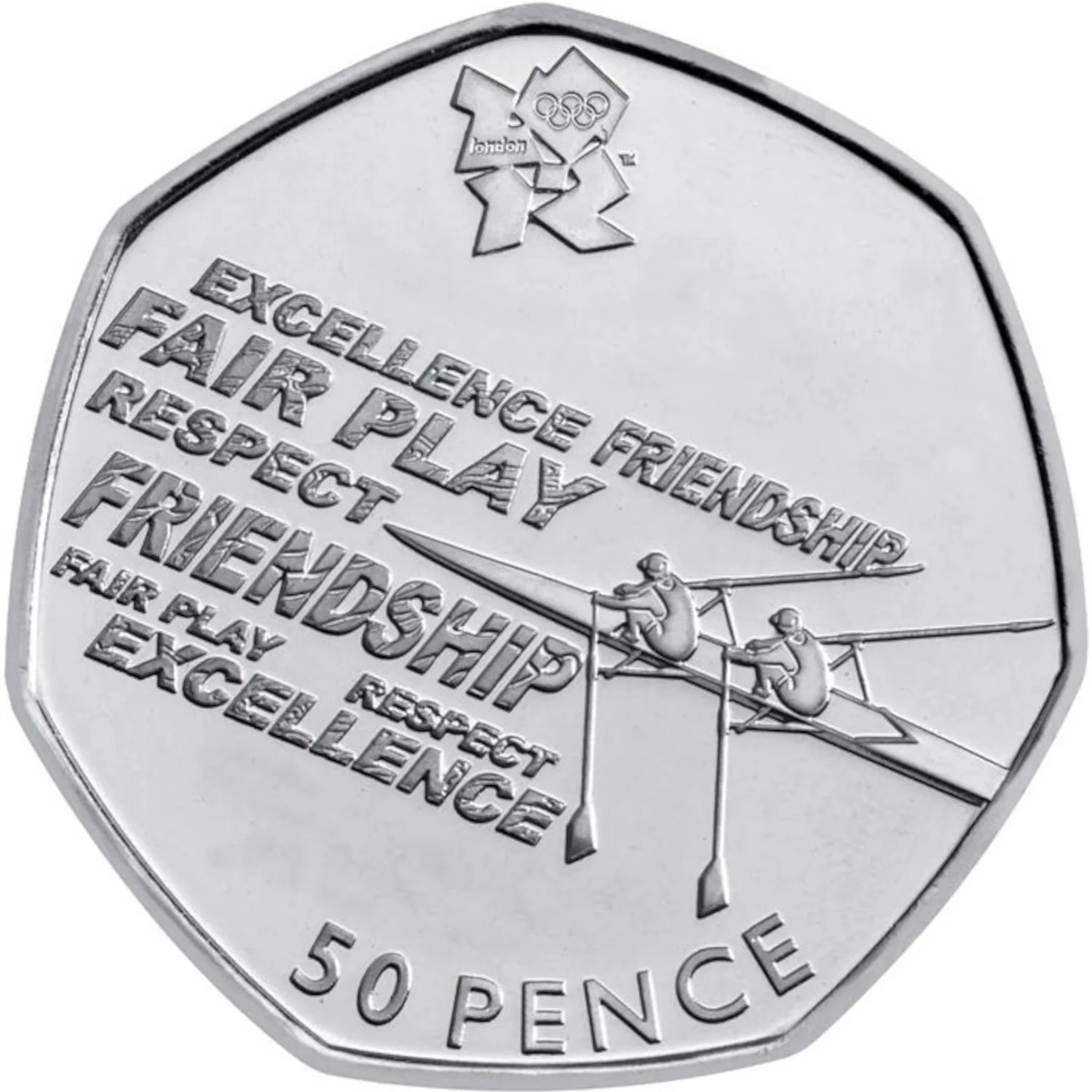 Two rowers with legend, London 2012 logo above, denomination below.