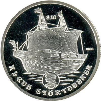 Central ship portrait with value above and date to the right.