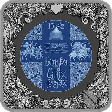 Centered is an image styled after the Radziwill Chronicle miniatures, topped with the year 1362 and the title THE BATTLE OF BLUE WATERS.