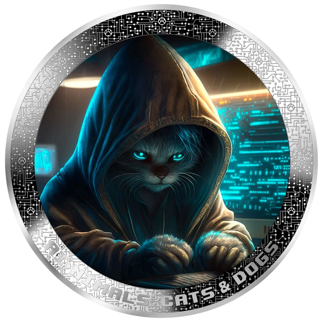 Coat of arms divides date, country name above, value below, surrounded by dog and cat vignettes.