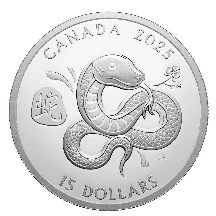 Inspired by Chinese folk art, this Year of the Snake (2025) design integrates the zodiac animal with its lucky orchid. The snake, woven through orchid leaves and branches, embodies the year's Wood element. Its head faces the auspicious East, while its coiled body forms the prosperous number eight. The reverse features the Chinese character for "snake."