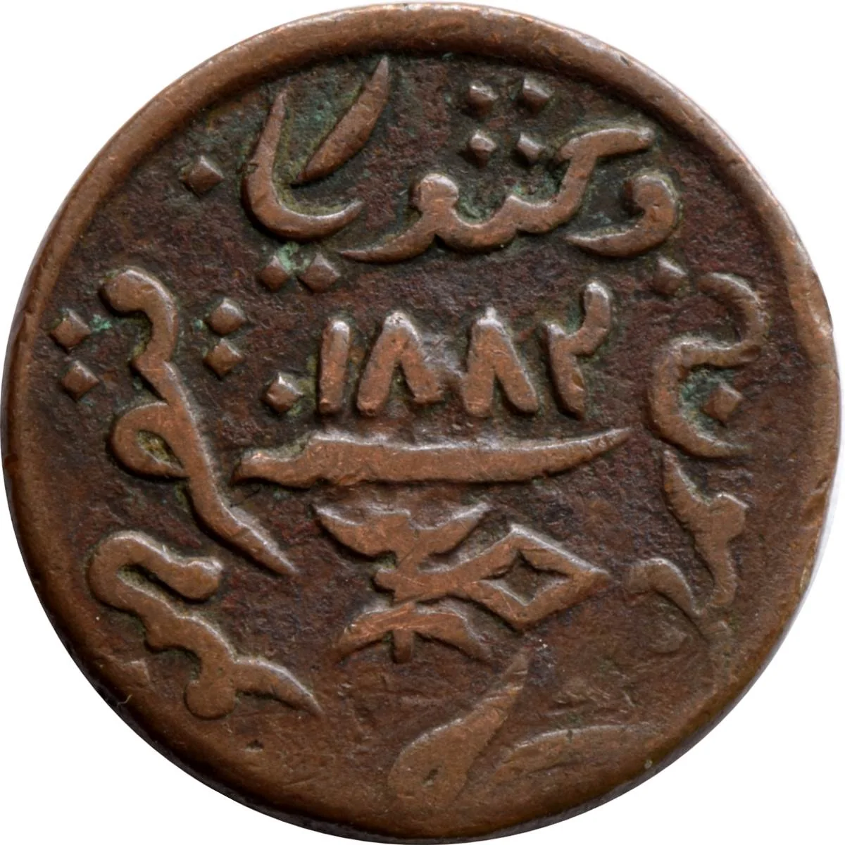 Victoria, Empress of India, minted at Bhuj. Central 'Sanah' with AD date, dagger below.