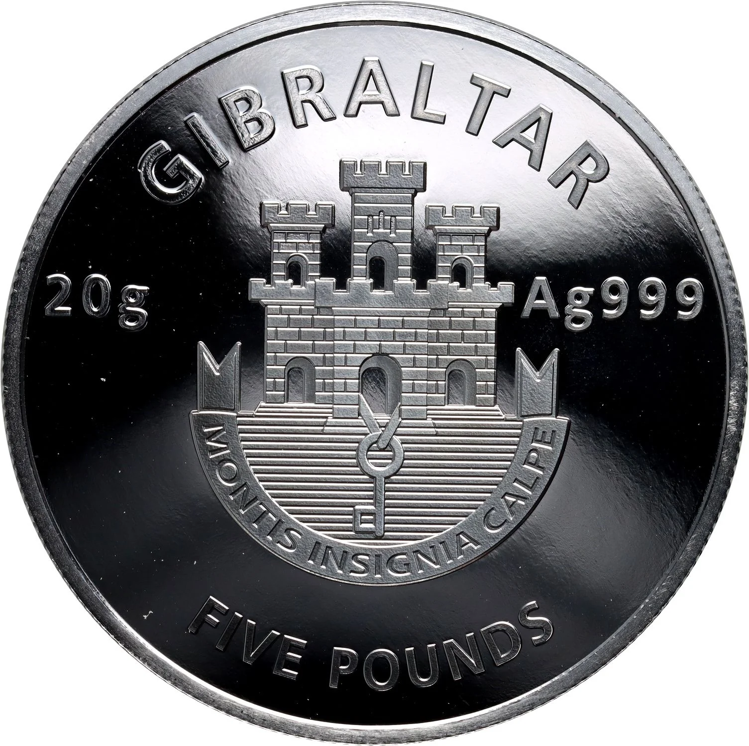 Coat of Arms of Gibraltar, legend above, denomination below.