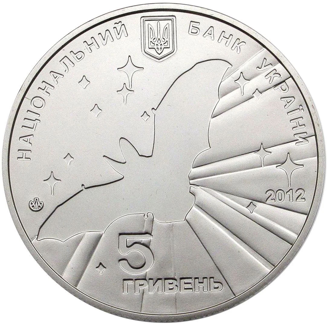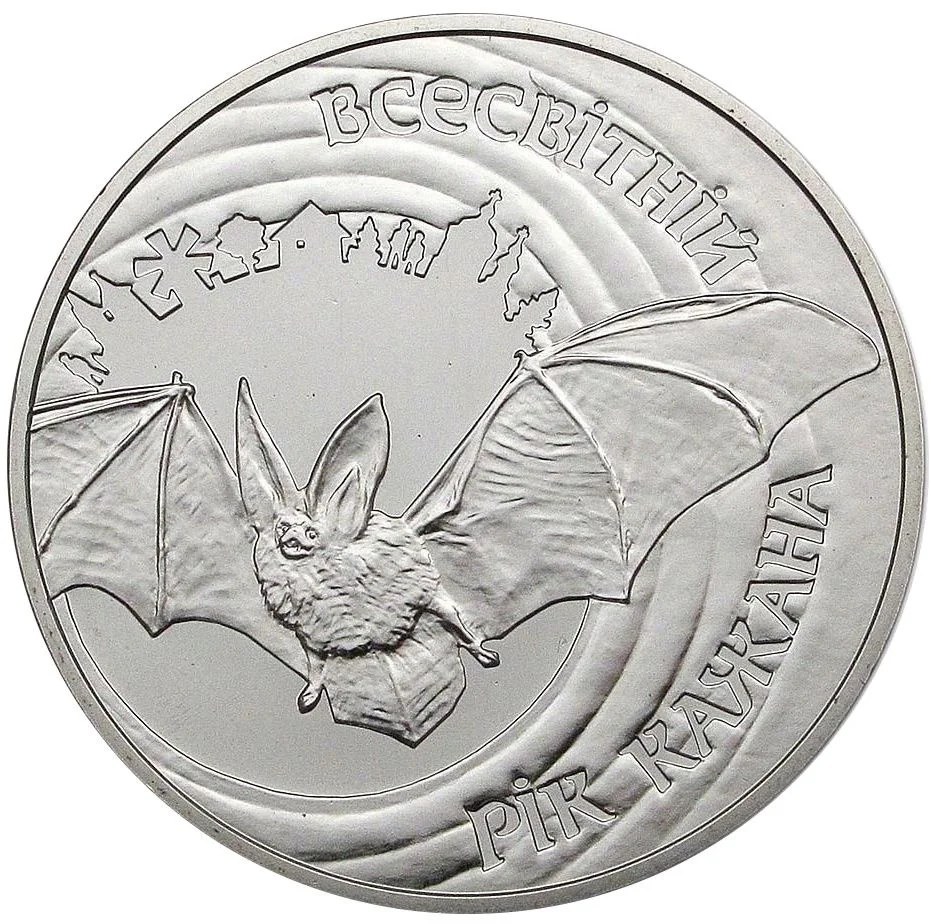 The obverse features the Small Ukrainian Coat of Arms, the legend "НАЦІОНАЛЬНИЙ БАНК УКРАЇНИ," and the year 2012 with the NBU logo. The reverse shows a smooth bat on a relief background with the denomination below.