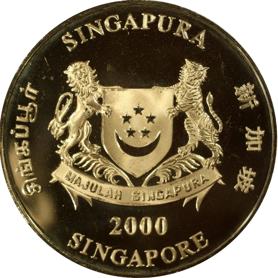 Singapore's Coat of Arms with supporters, encircled by "SINGAPORE" in its four official languages. Date below.