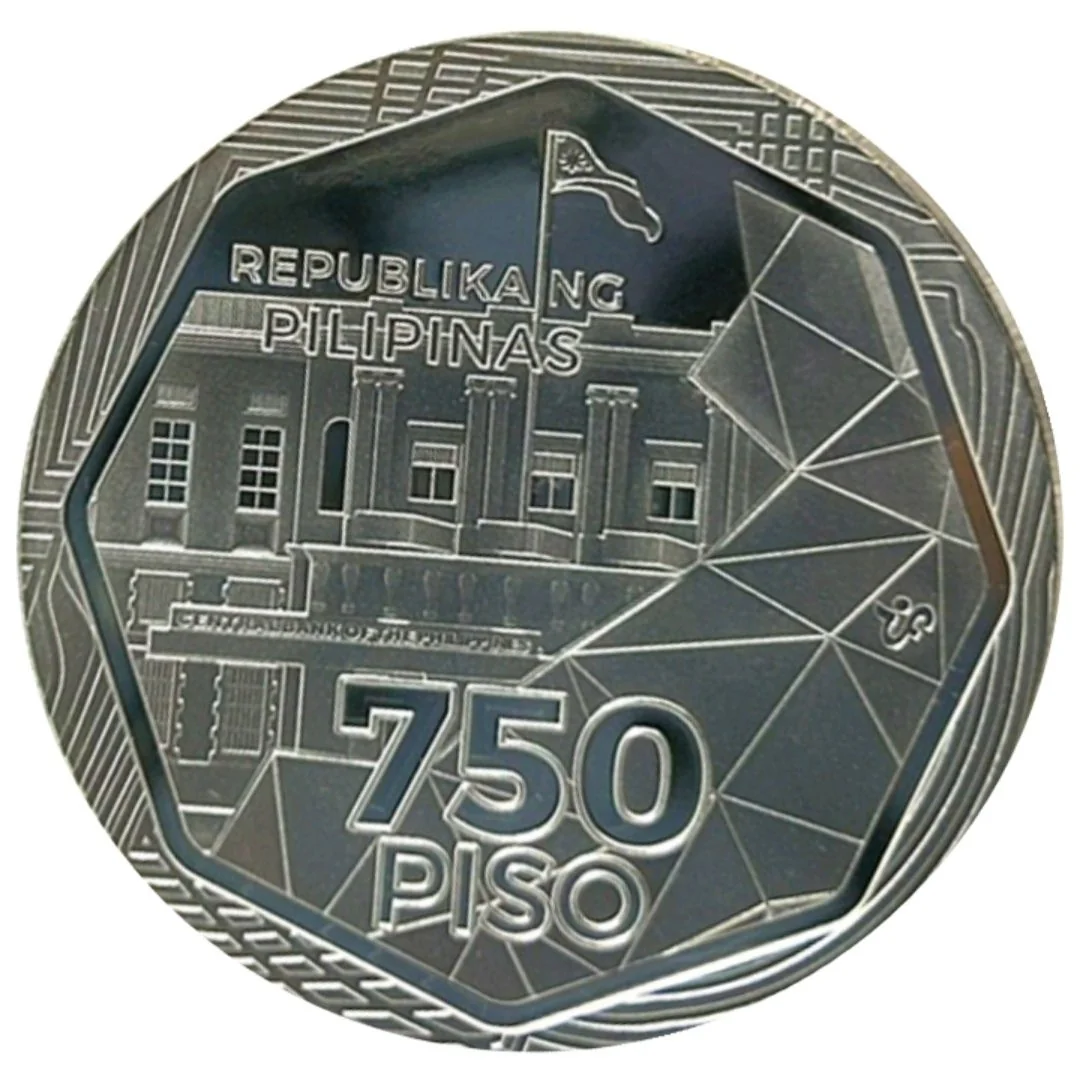 Description: Featuring "1949," a color 75th anniversary logo, "CELEBRATING 75 YEARS OF CENTRAL BANKING IN THE PHILIPPINES," a diamond-shaped border with stylized "75," the BSP seal, and "2024."