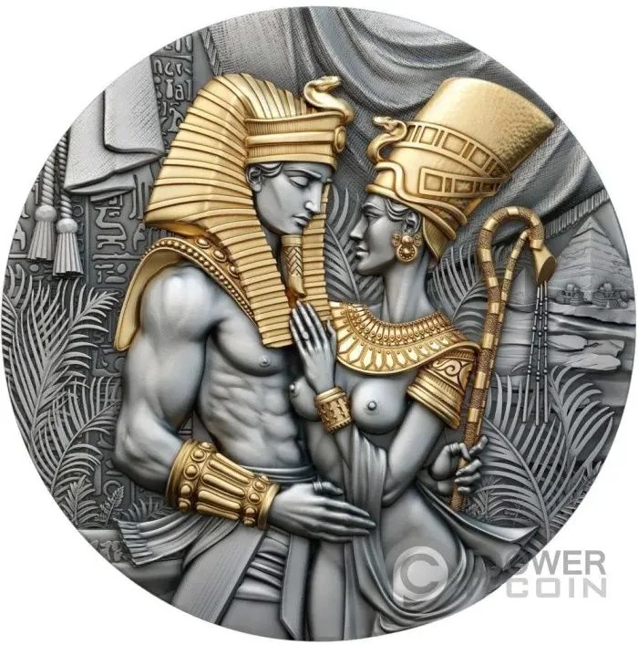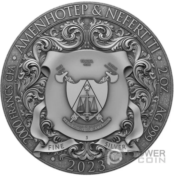 Inscription: 2000 FRANCS CFA • AMENHOTEP & NEFERTITI • 2 oz AG 999
