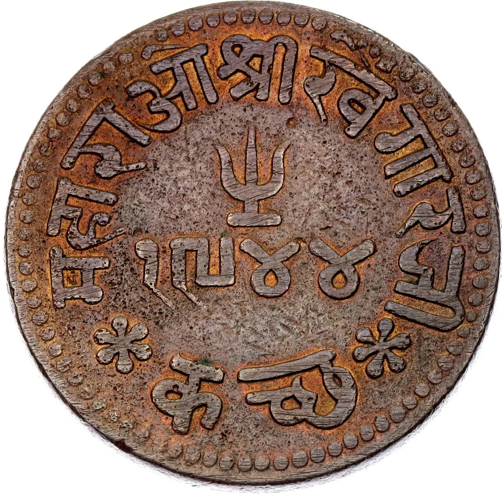 Trident center, VS date below. Outer margin: Devanagari legend.