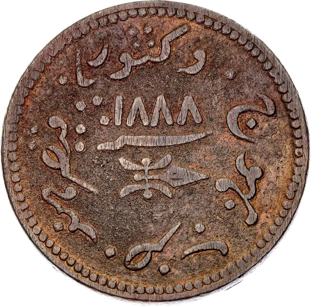 Center: 'sanah' date with dagger below. Outer margin: Urdu legend "Victoria Kaisar Hind zarb Bhuj" encircling clockwise.