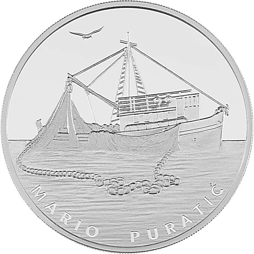 Reverse side features a symbolic fishing boat at sea.