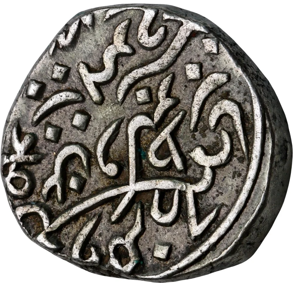 Trident, crescent, vertical dagger. Devnagari "Rao," VS date in Kutchi numerals.