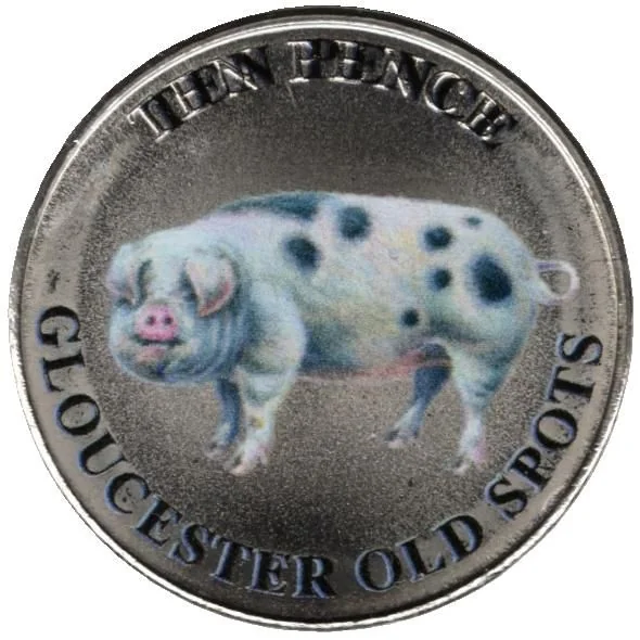 Gloucester Old Spots are a heritage breed of pig known for their distinctive white coat with black spots, hardiness, and gentle nature.