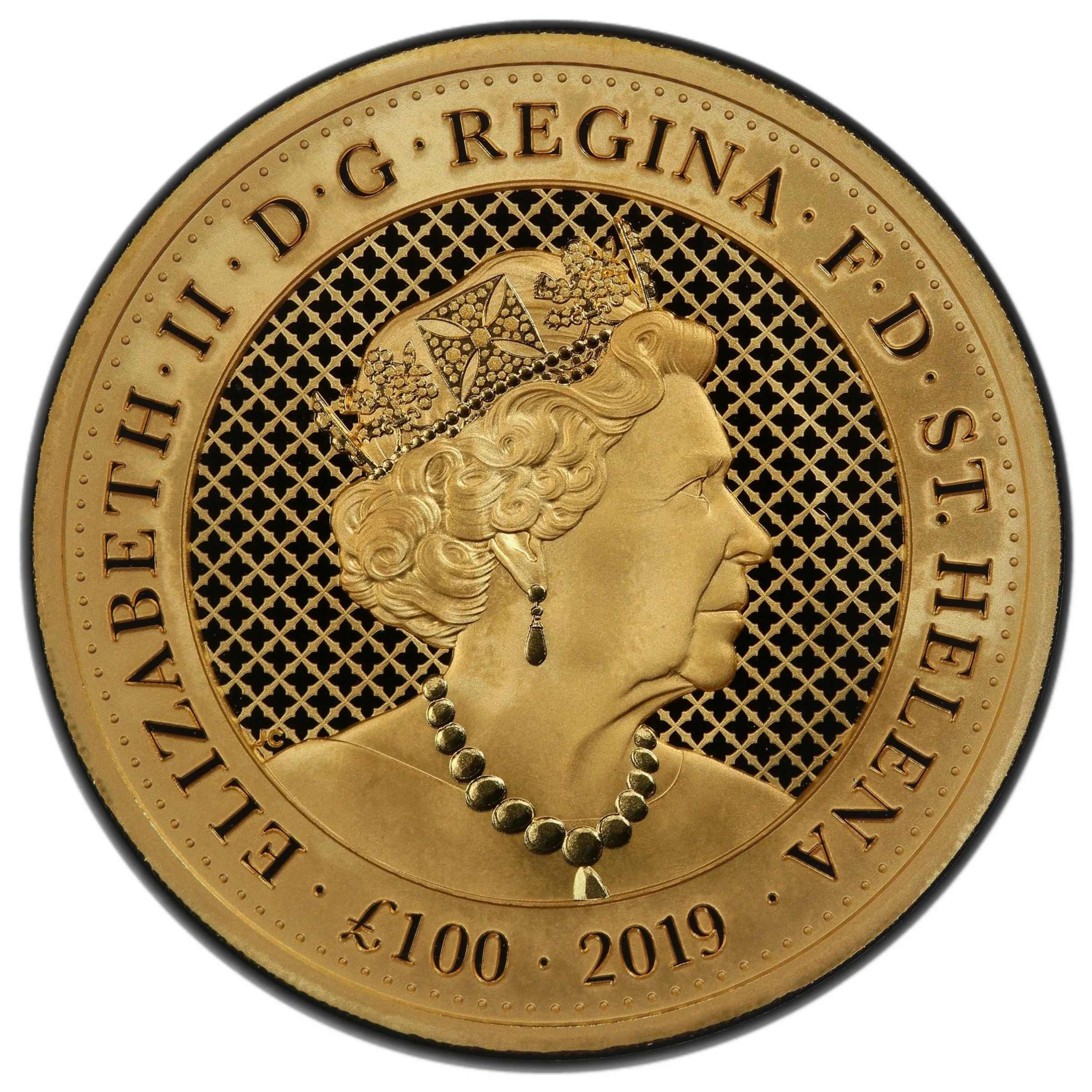 Translation: Elizabeth II · By the Grace of God, Queen · Defender of the Faith · St. Helena