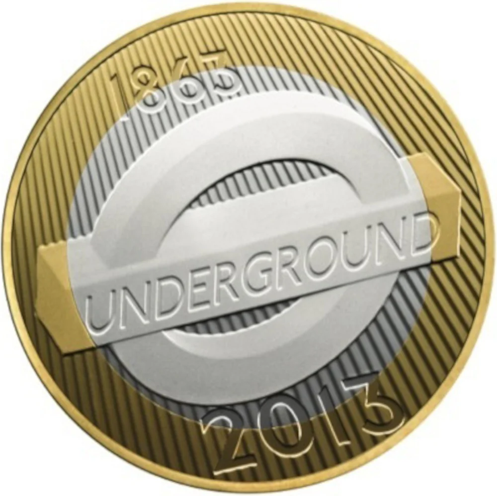 The 'Roundel' £2 coin features the iconic London Underground logo, inspired by Man Ray's 1938 poster.