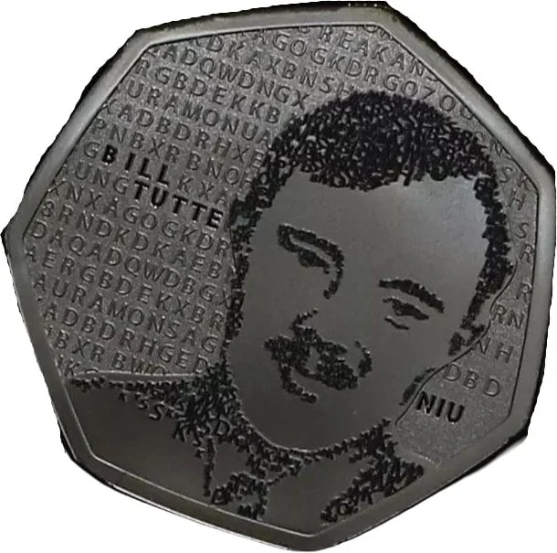 A typographic portrait of Bill Tutte concealing a decryptable secret message.