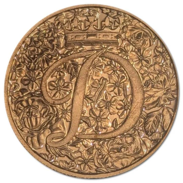 Diana's "D" crowned, encircled by her favorite flowers.