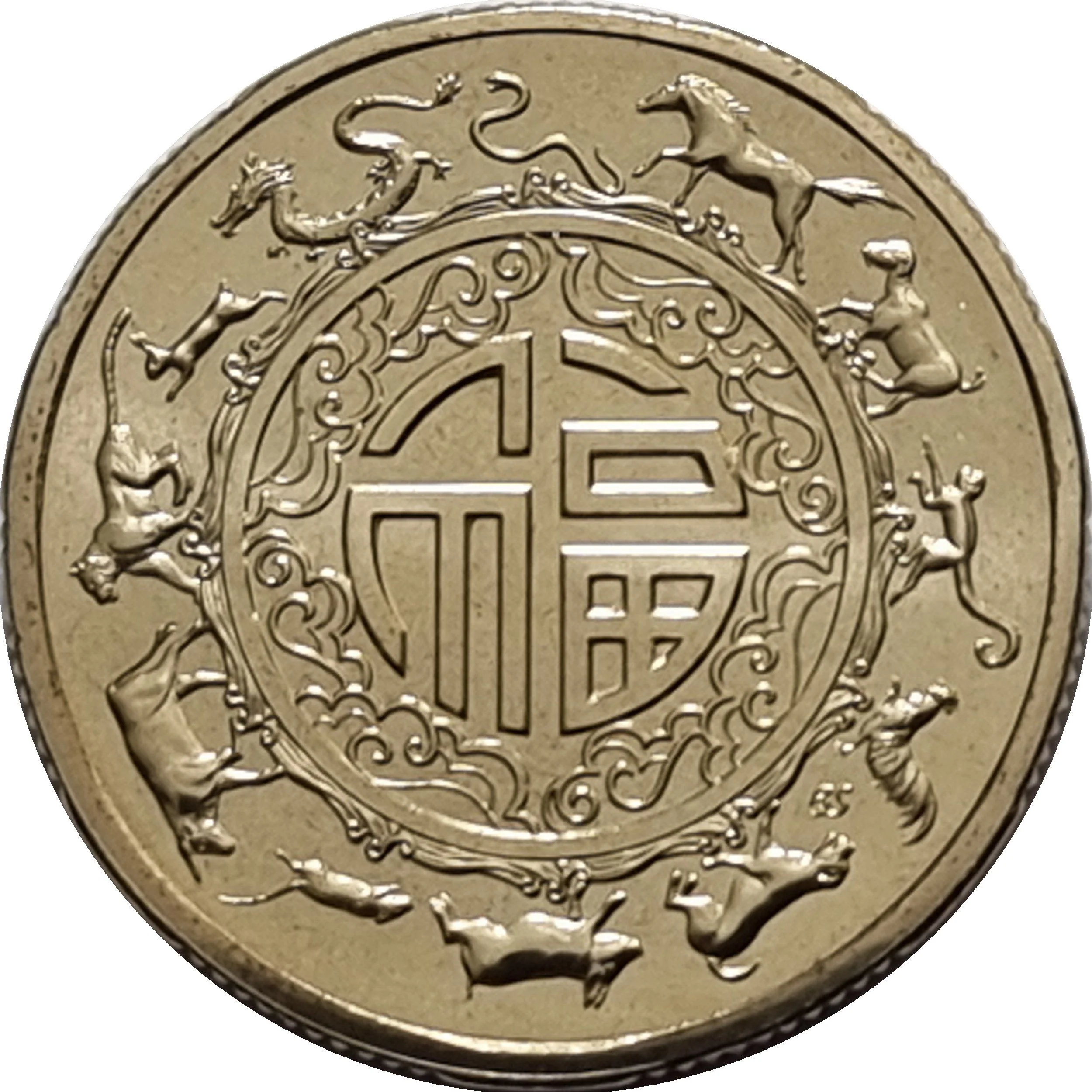 An inner circle with the character for Good Fortune, encircled by the twelve Lunar Animals, beginning with the Snake at the top.
