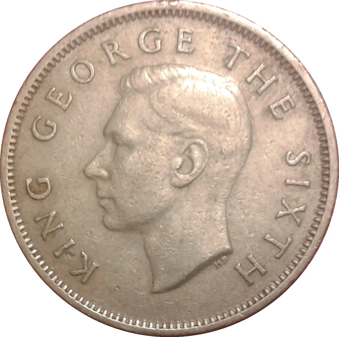 King George VI, uncrowned, left-facing portrait, legend encircling.