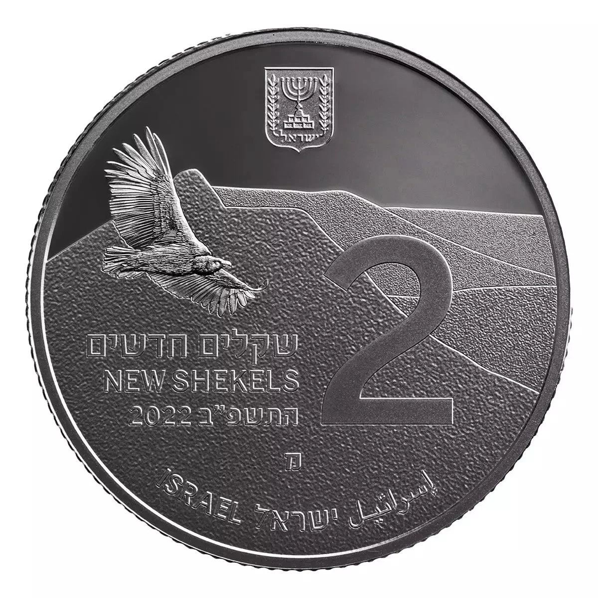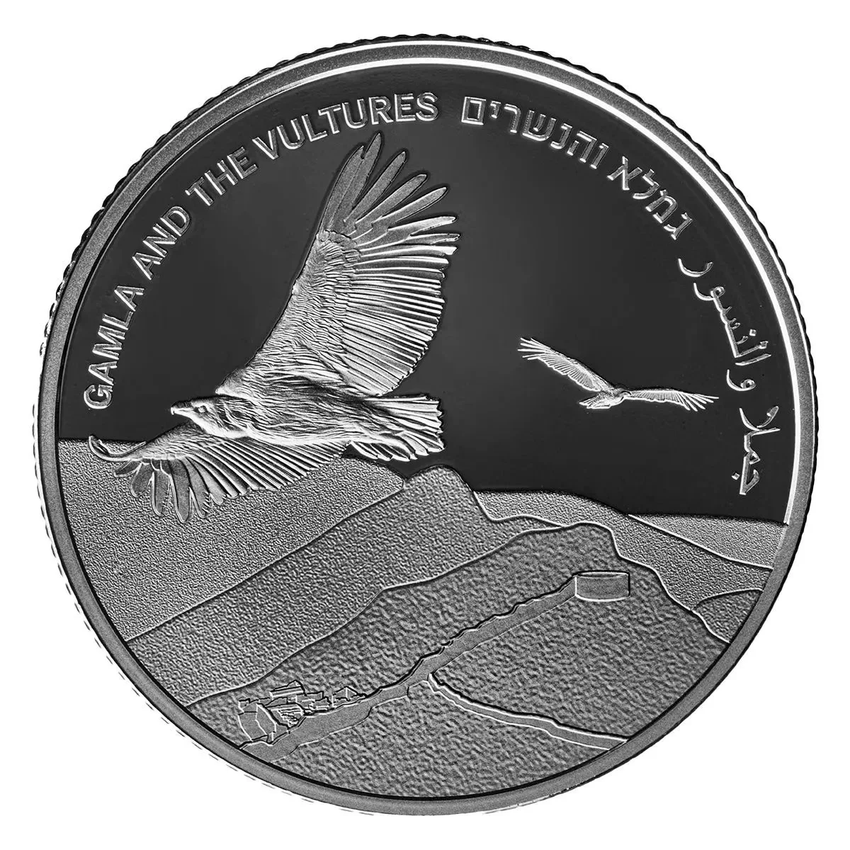 A vulture soaring above Gamla Nature Reserve, with the denomination and mint year to the right.