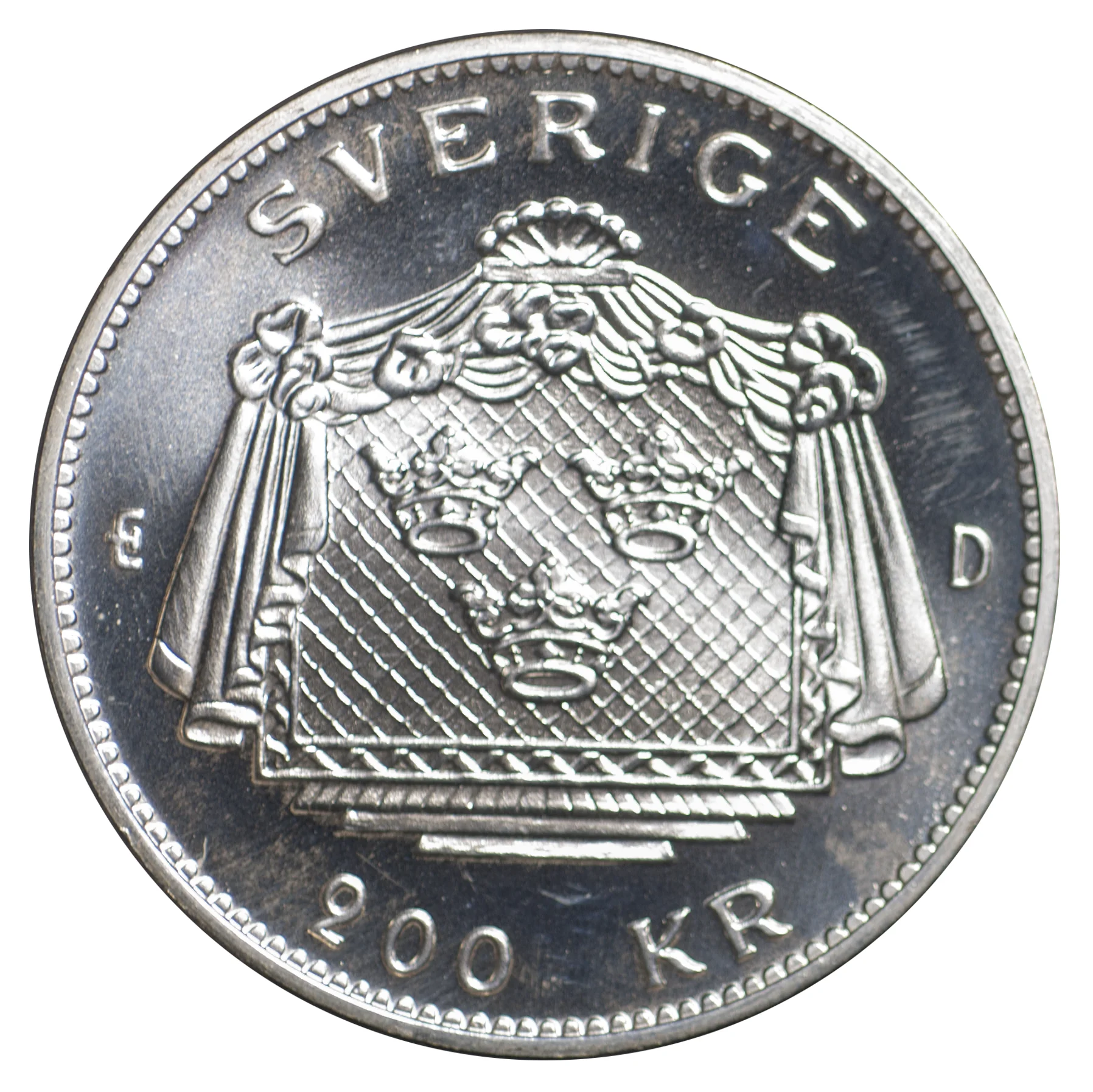 Sweden's Three Crowns in a mantle flank the letters ED: "E" for the mint and "D" for the Riksbank Governor's initials. Value below.