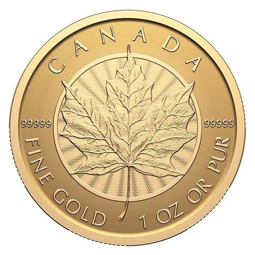 The reverse features Walter Ott’s iconic Gold Maple Leaf design against a radial sunburst finish.