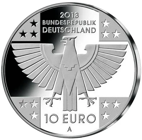 German national eagle, cross, year, issuing country, face value, and Berlin mintmark (A).