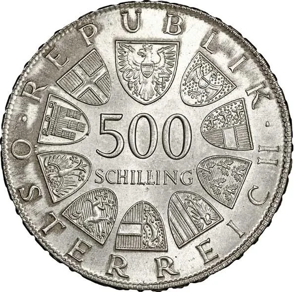 Austrian coat of arms within a ring of shields representing its nine federal states.