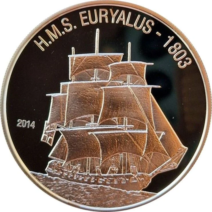 A shield flanked by stallions, topped with a banner and supported by two spears.